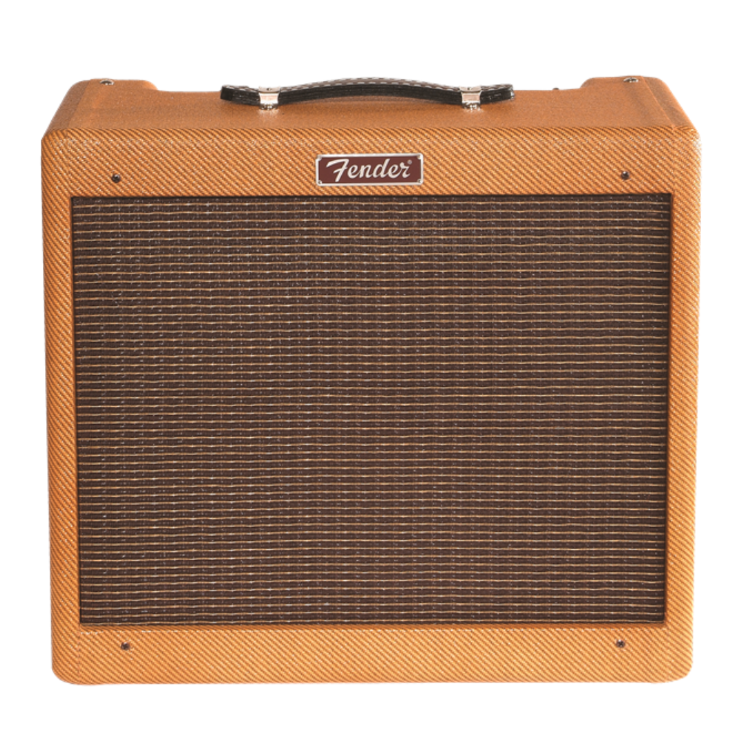 El Blues Jr. Lacquered Tweed toma la joya de 15W de Fender y le da el verdadero tratamiento vintage con una cubierta de tweed lacado y un altavoz Jensen de 12″ con voz vintage. Sus tonos dorados se generan mediante una ruta de señal totalmente a válvulas que utiliza un par de válvulas de salida EL84 y 3 válvulas de preamplificación 12AX7. Añade la famosa reverberación Fender, controles flexibles, el conmutador FAT para el realce de medios y ya está. Y no hay más que ver ese panel cromado, ese acabado de tweed con tela de rejilla marrón y dorada de estilo vintage, ¡y esos mandos de puntero vintage!
