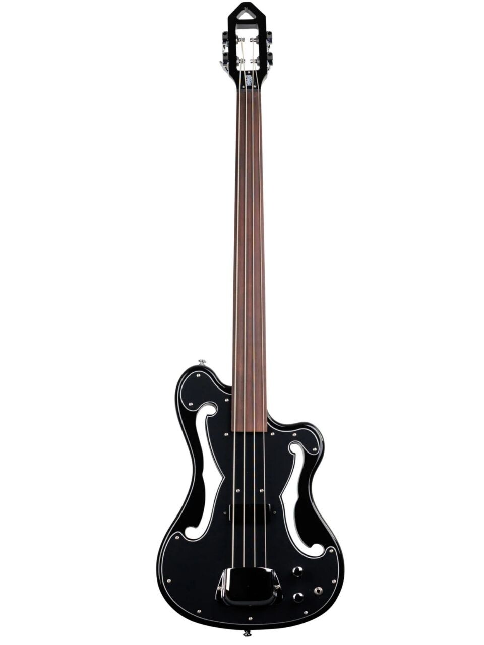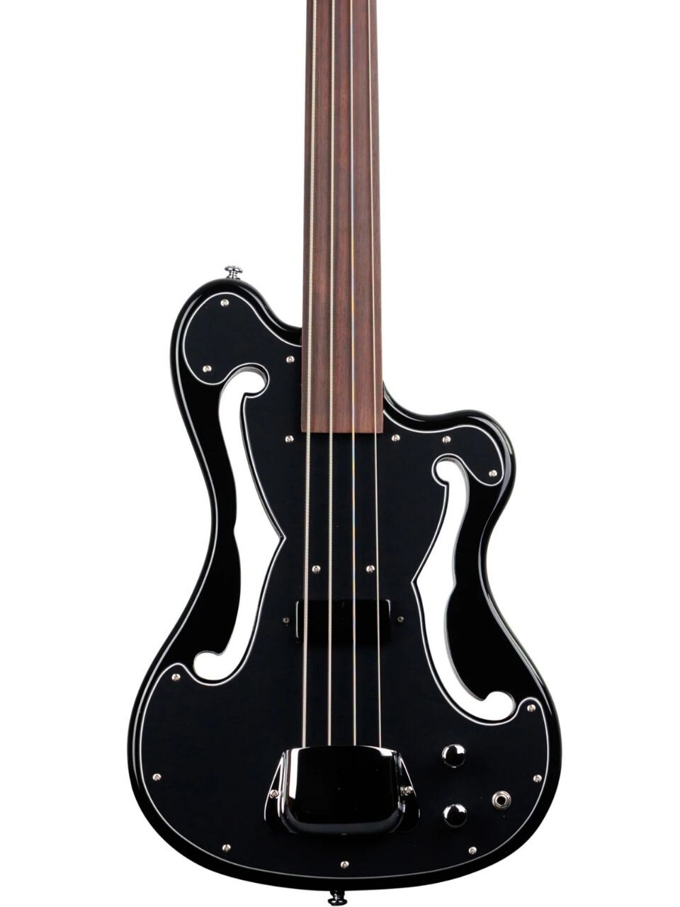 El bajo EEB (Eastwood Electric Bass) es un homenaje al modelo AMPEG AEB de finales de los años 60. Extraño pero elegante, el EEB tiene un aspecto único entre los bajos. Las aberturas en forma de F están cortadas completamente a través del cuerpo, lo que le da un aspecto transparente inusual.
