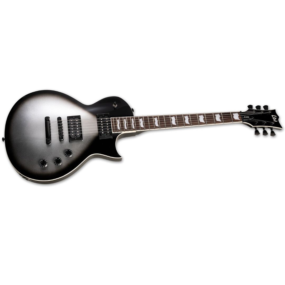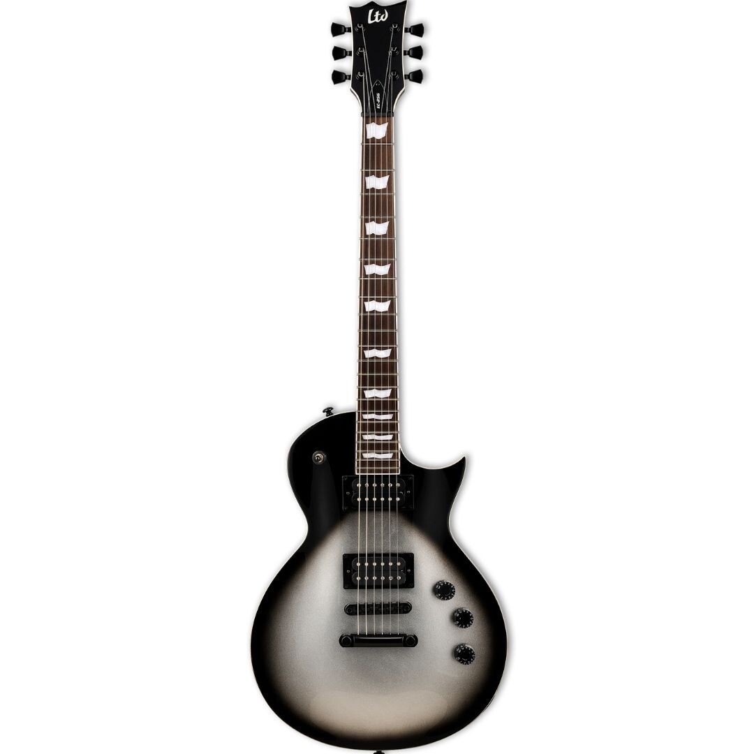 Si buscas una guitarra con una excelente relación calidad-precio que te ofrezca mucho más de lo que esperas por su módico precio, la respuesta obvia es la LTD EC-256. Con una forma clásica de corte simple excelente para todos los estilos y géneros musicales, la EC-256 está disponible en un nuevo acabado Silver Sunburst Teardrop y ofrece características que normalmente se asocian con las guitarras de alta gama, como ribetes en el cuerpo, el mástil y el clavijero, y una construcción fiable de mástil encolado con una escala clásica de 24,75 pulgadas. La EC-256 también cuenta con un cuerpo de caoba, un cómodo mástil de caoba de tres piezas en forma de U delgada y un diapasón de palisandro con incrustaciones de la bandera de ESP y 22 trastes extra jumbo. Esta guitarra cuenta con un conjunto de nuestras aclamadas pastillas humbucking ESP LH-150 en las posiciones del puente y el mástil, que ahora se ofrecen con nuevas y atractivas cubiertas en negro mate y proporcionan un tono potente y excelente para todos los géneros musicales. También se obtiene la flexibilidad de los tonos de bobina simple controlados por un interruptor push-pull en el botón de tono.