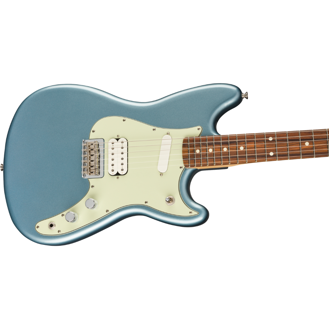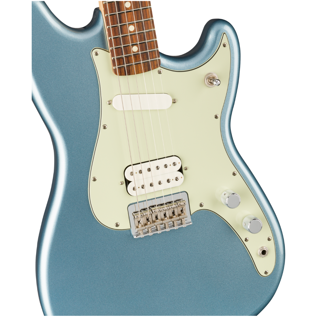 La guitarra eléctrica Fender Player Duo Sonic HS Mod 0144023583 es una opción excepcional para músicos que buscan versatilidad y calidad. Con un acabado brillante de poliéster en un atractivo color Ice Blue Metallic, esta guitarra destaca tanto en estética como en rendimiento. Su cuerpo sólido de aliso y el mástil de arce ofrecen una construcción robusta y duradera, mientras que el diapasón de pau ferro proporciona una rica resonancia y comodidad al tocar. La configuración de pastillas H-S permite una amplia gama de sonidos, ideal para géneros como blues, jazz, metal y rock. Con su sistema de control de tres posiciones para las pastillas y un máster de volumen y tono con función de selección de bobina, los músicos pueden explorar diversas tonalidades y matices. Con una escala de 24″ y 22 trastes, la Fender Duo Sonic es perfecta para guitarristas diestros que buscan una guitarra que combine estilo, sonido y funcionalidad en cada interpretación.