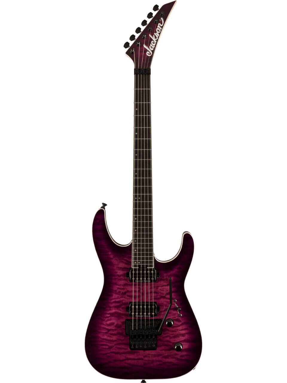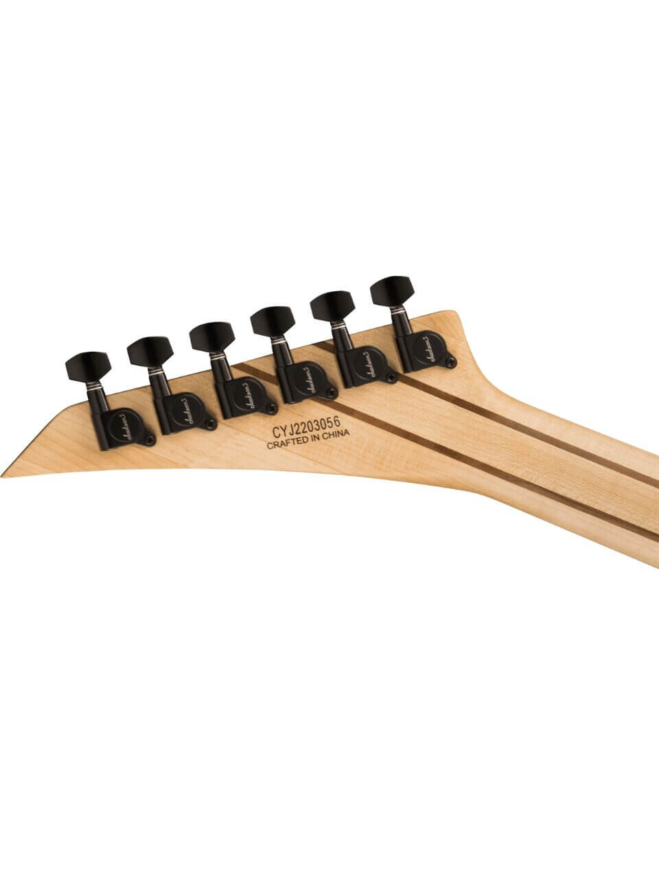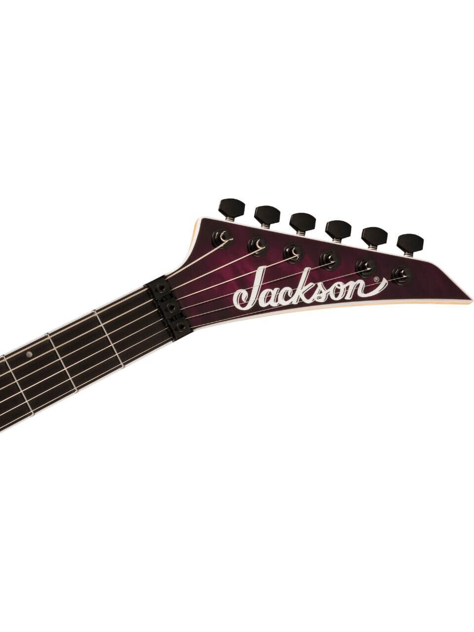 La Pro Plus DKAQ, una moderna máquina de metal, cuenta con un cuerpo con tapa arqueada de okoumé de una sola capa, revestido con una magnífica tapa de arce acolchado y un robusto mástil atornillado de cinco piezas de arce/nogal reforzado con grafito, con un talón esculpido para facilitar el acceso a los trastes superiores. El acabado al aceite aplicado a mano en la parte posterior del mástil proporciona una gran comodidad al tocar, mientras que la rueda de ajuste del alma montada en el talón permite realizar ajustes rápidos y cómodos en el relieve del mástil. Con 24 trastes jumbo de acero inoxidable e incrustaciones de puntos perlados descentrados, el diapasón de ébano con radio compuesto de 12«-16» es la plataforma ideal para acordes pesados y solos rápidos y desgarradores.Un par de potentes pastillas humbucking Seymour Duncan® de montaje directo, JB™ (puente) y ’59™ (mástil), dan potencia a esta guitarra, proporcionando un sonido potente y manteniendo la claridad con una definición de notas mejorada, un componente fundamental para el metal moderno. Este instrumento también está equipado con controles de volumen y tono individuales, además de un selector de cinco posiciones para ajustar y refinar el tono, y un sistema de puente trémolo Floyd Rose® 1000 Series de doble bloqueo empotrado para mejorar la estabilidad de la afinación. Los puntos laterales Luminlay® te guiarán por el diapasón incluso en los escenarios más oscuros.Con el estilo distintivo de Jackson, la Pro Plus DKAQ está disponible en una variedad de acabados con clavijero puntiagudo de 6 en línea a juego y herrajes totalmente negros, incluyendo clavijas selladas fundidas a presión y botones de correa de bloqueo Jackson®.