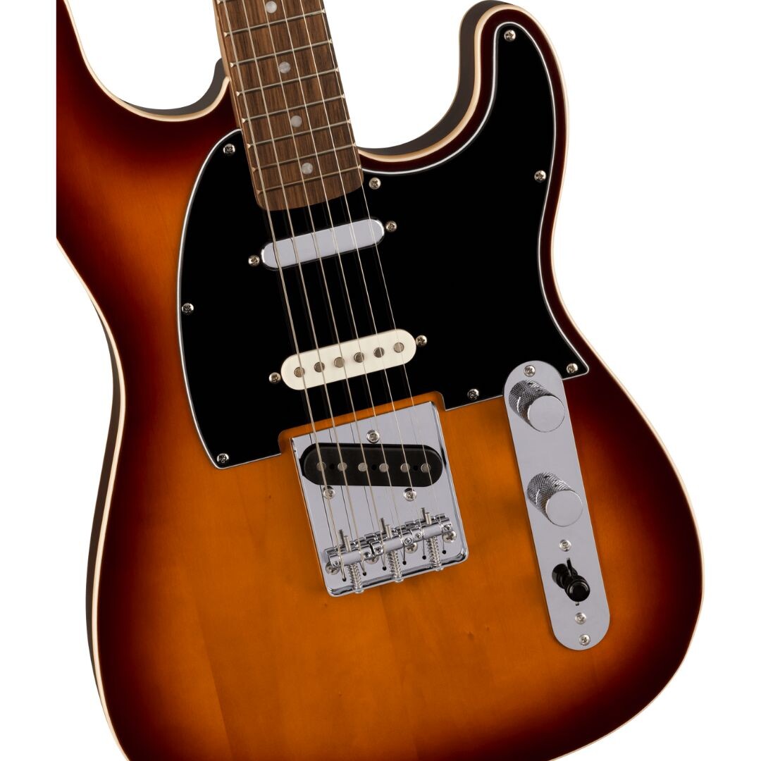 Con un cuerpo de doble ribete inspirado en la Telecaster® personalizada y una configuración Tele® de 3 pastillas que se hizo famosa en la escena musical de Nashville, la Paranormal Custom Nashville Stratocaster® es una guitarra camaleónica destinada al estrellato. Con un trío de pastillas single-coil de alnico diseñadas por Fender con conmutador de 5 posiciones y botón de tono push/pull para activar la pastilla del mástil en las posiciones 1 y 2, esta Squier® Strat rebosa versatilidad tonal. Otros detalles incluyen un puente Tele® con cuerdas a través del cuerpo para una resonancia óptima, un perfil de mástil delgado y cómodo en forma de «C», un acabado brillante en el mástil para una sensación elegante y segura, y clavijas de afinación de estilo vintage para una afinación suave y precisa.