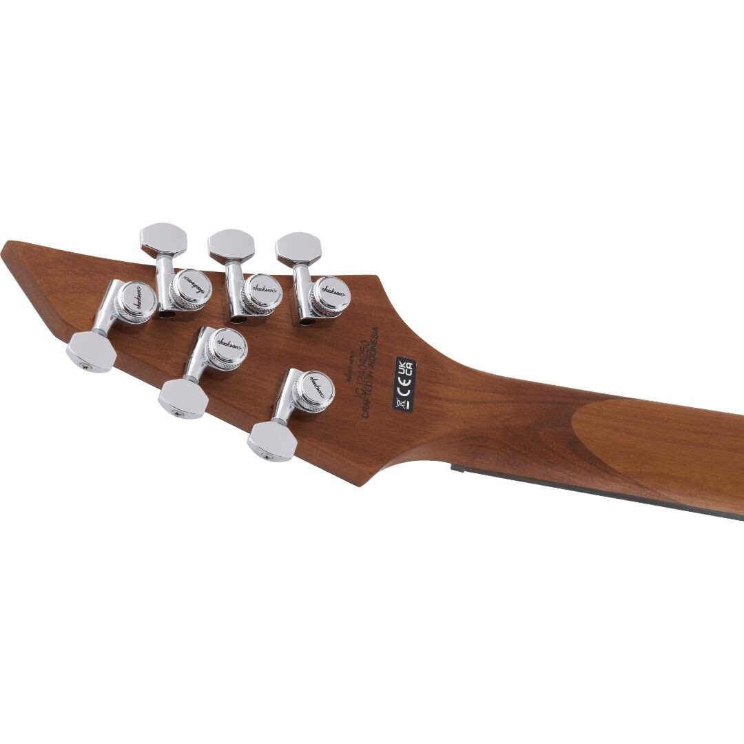 Disponible en Red Crystal o Blue Sparkle con un clavijero Jackson 3×3 AT-1 inverso a juego, esta Pro Juggernaut exclusiva también cuenta con un puente Jackson HT6 de cuerda a través del cuerpo, clavijas de bloqueo selladas y fundidas a presión Jackson, cierres de correa de doble bloqueo Dunlop® y una funda de transporte.